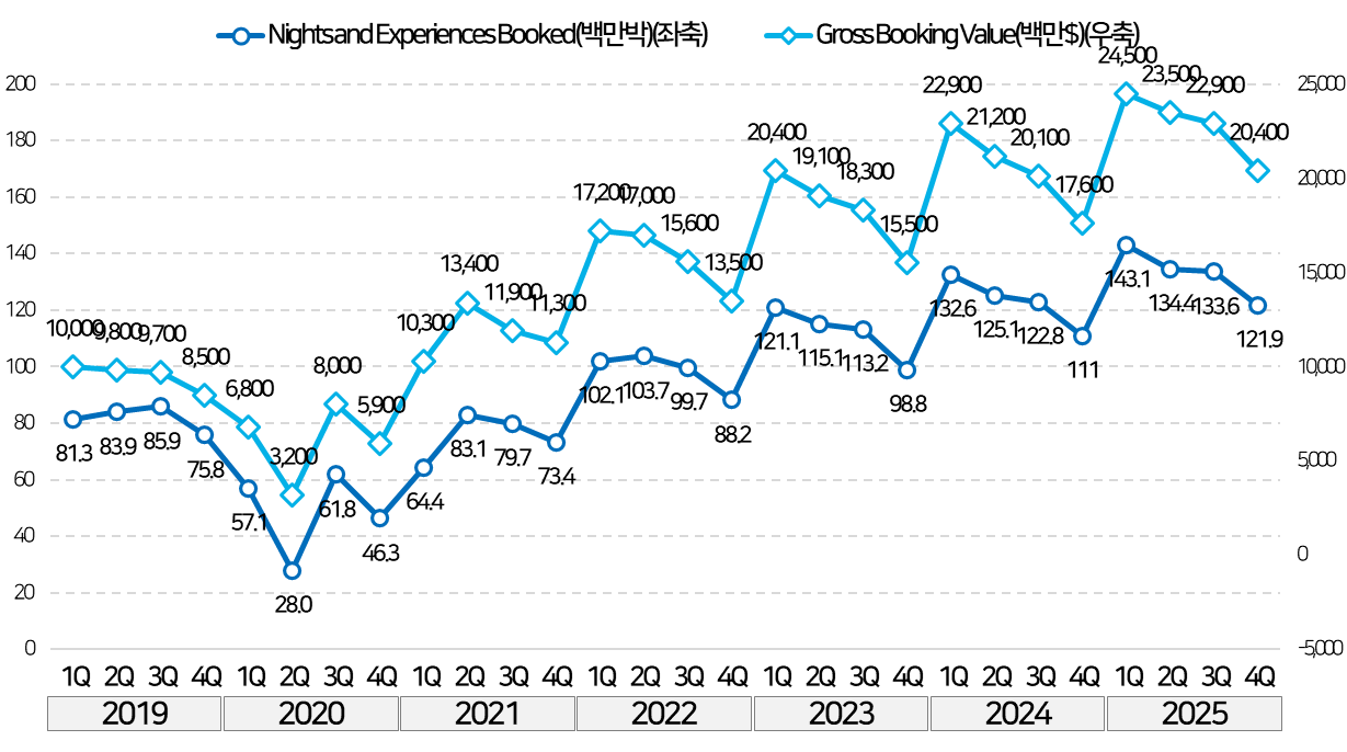 참고) 익스피디아는 2018년까지는 실제 숙박일 수(Stayed Room Nights), 그 이후는 예약 숙박일 수(Booked Room Nights)(2023년 1분기 이후 실제 숙박일 수가 발표에서 제외되어 변경)
