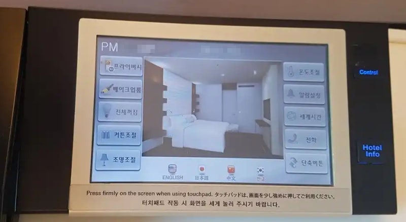 (아래는 포시즌스호텔 서울 객실 환경 조절 장치 사진입니다.)