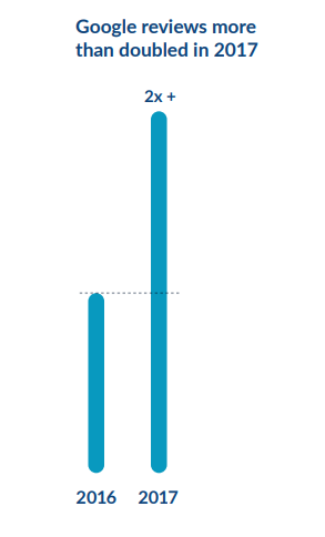 2017년 호텔 리뷰 수는 전년 대비 27% 증가했다고 합니다. 이는 2016년의 22%, 2015년의 20%를 뛰어넘는 것입니다. 실제 한 달 동안 개별 호텔에 남겨지는 리뷰는 지난해 29개에서 38개로 크게 증가했습니다. 31%나 증가한 것인데요. 이는 호텔에서 점점 더 리뷰를 중요시 하면서 고객들의 리뷰를 읽고 응답하는 긍정적인 선순환이 일어났기 때문이라고 합니다.기술의 발달로 SNS등에 남기는 호텔 관련 업급도 호텔에서 파악할 수 있을 가능성이 높기 때문에 이 상황은 앞으로도 계속될 것으로 보입니다.