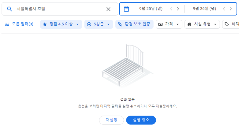 해당 필터를 적용시키면 위와 같이 환경보호인증을 받은 호텔만 검색할 수 있습니다.