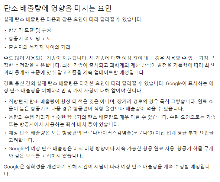 그 예로 구글의 탄소배출량 방법론은 다른 항공 관련 검색업체에서도 가져다 보여주기 때문입니다.