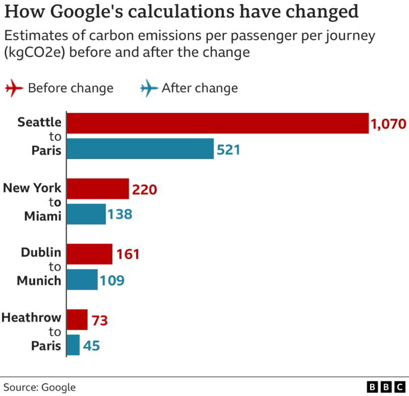 Passengers could now underestimate their flights' emissions by nearly half using the Google tool, BBC reveals.