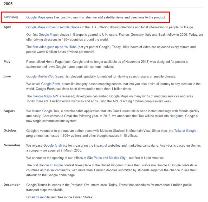 2. 구글 지도 상 호텔 정보 제공(2010.3월) 2005년에 런칭한 구글 지도는 우리 생활을 크게 바꿔놓았습니다. 관련 내용은 2015년에 가디언에서 구글 지도 10주년을 맞아 정리한 기사 링크 드립니다.