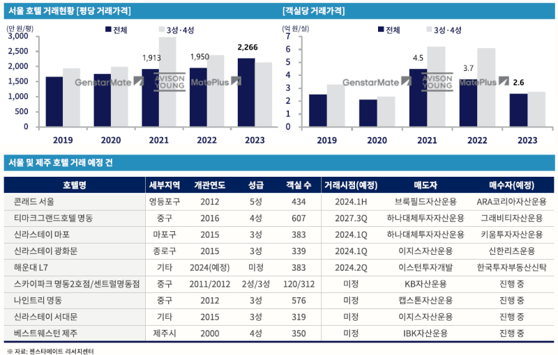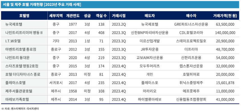 얼마전 젠스타메이트에서 2023년 서울과 제주의 호텔 거래 시장을 분석한 리포트가 나왔는데요.