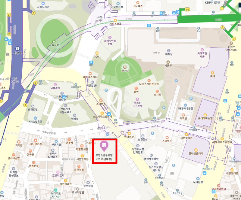 부영호텔의 위치는 조선호텔 앞쪽에 소공동 양복점 거리 건물 뒷편에 공터쪽인데요.