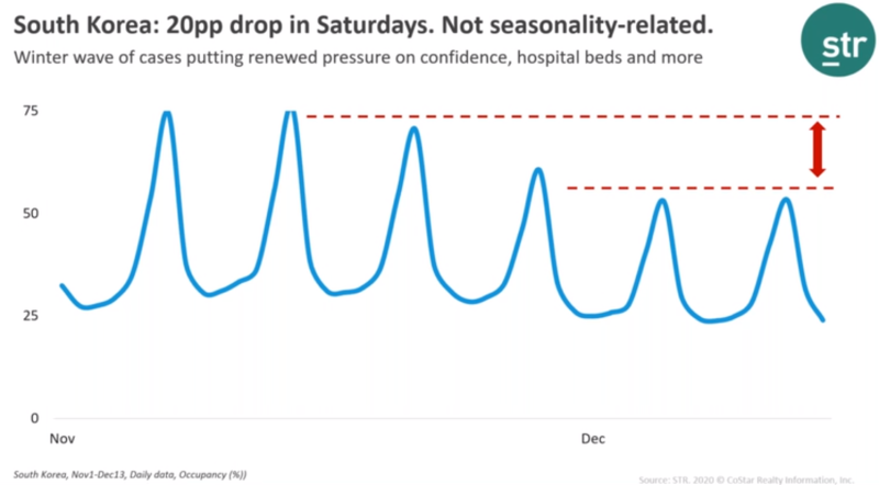 지난 11월까지 회복세였던 객실점유율은 코로나19의 재확산으로 인해 하락하고 있습니다.