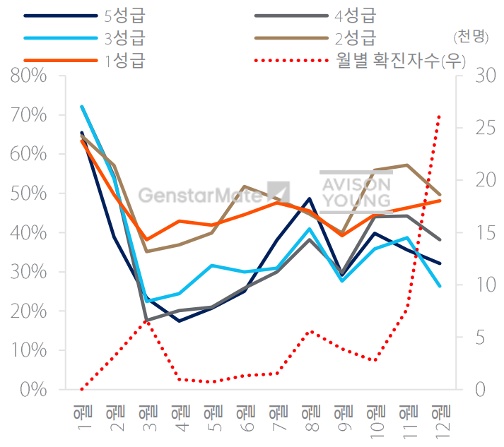 그 밖에 지난 4월 젠스타메이트에서 작년 월별 객실점유율을 발표했는데요.