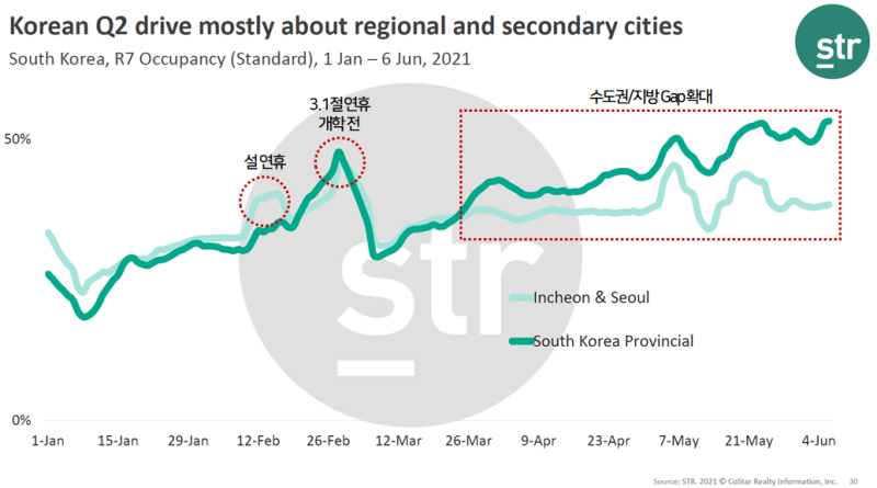 지방 호텔들의 객실점유율은 이제 50%를 상회하는 수준을 보이고 있습니다.