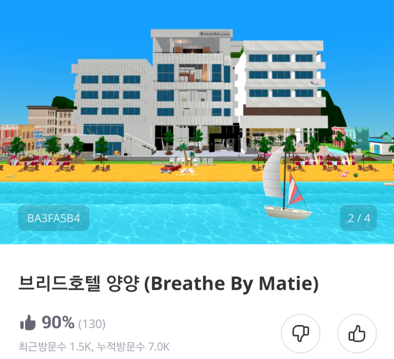 한화호텔앤드리조트에서는 브리드호텔 양양을 제페토에서 출시했습니다.