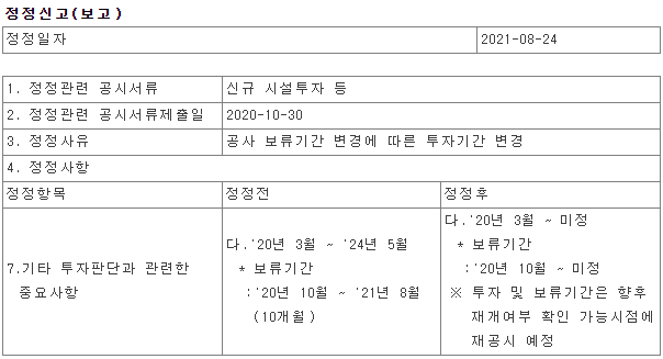 새로운 공시를 통해 무기한 보류라고 발표했습니다.