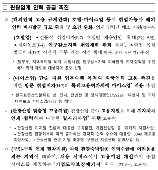 4~5성 호텔 및 콘도에서 조선족(중국 동포), 고려인 등이 일할 수 있게됩니다.