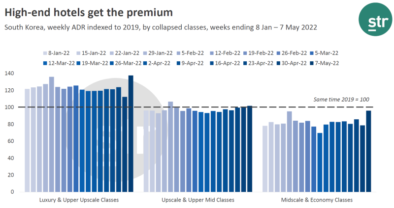또한 업스케일(Upscale)과 어퍼미드스케일(UpperMidscale) 호텔들 역시 2019년 수준을 모두 회복했습니다.