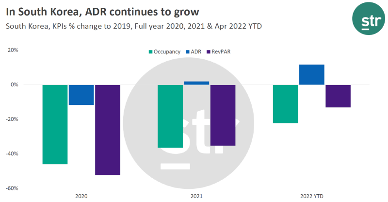 **ADR(평균객실료; Average Daily Rate)**은 이미 2021년부터 2019년 수준을 회복했는데요.