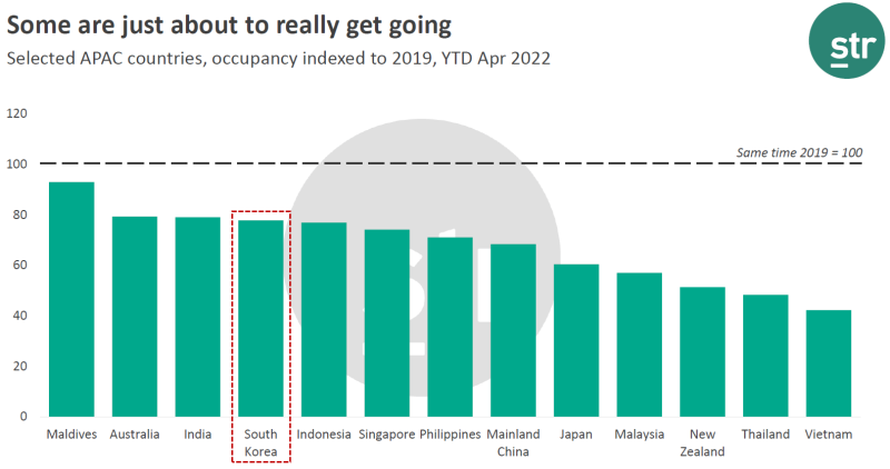객실점유율만으로 비교 시 우리나라는 아태지역 중 상위권입니다.