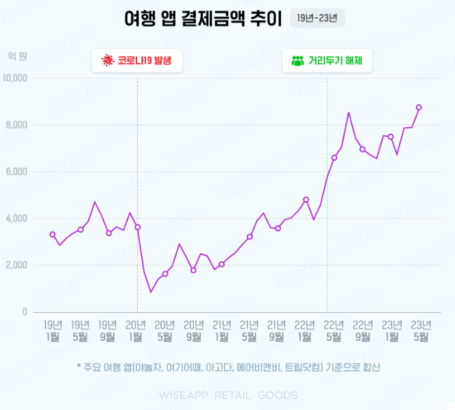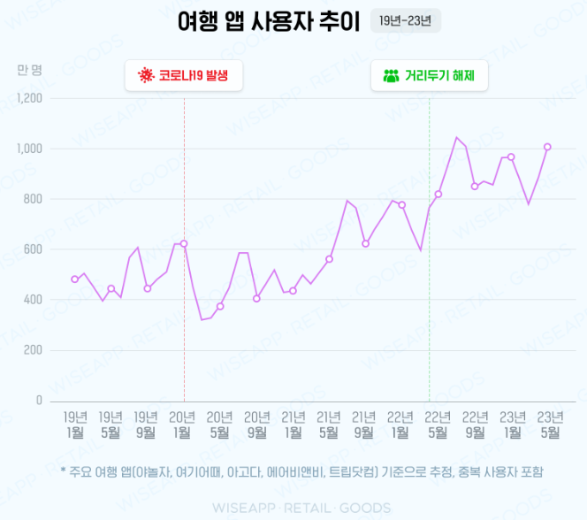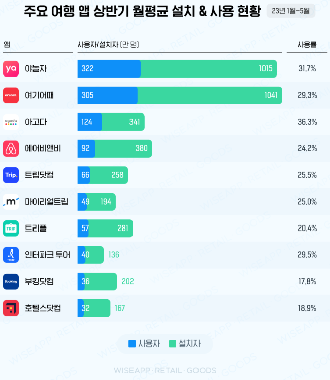 와이즈앱에서 상반기 여행 앱 사용 통계가 나왔는데요.