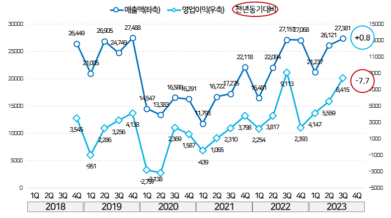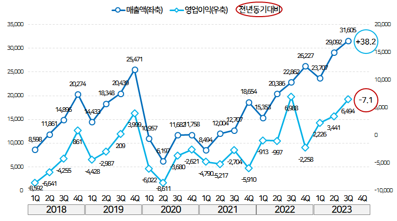 기존에는 DART 자료를 사용했었으나, 이번 분기부터는 IR 자료를 사용했습니다.