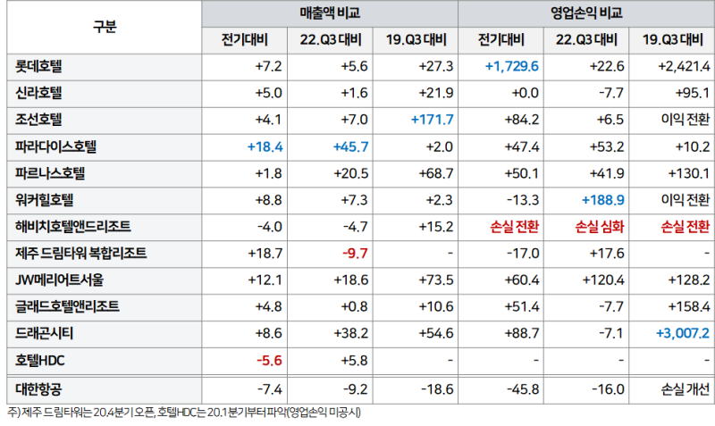 국내 호텔 재무실적 현황 및 분석(2023년 3분기)