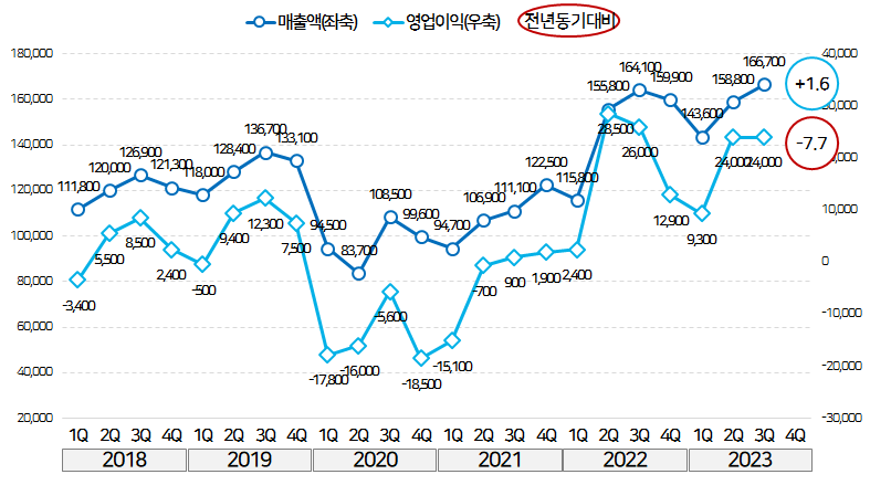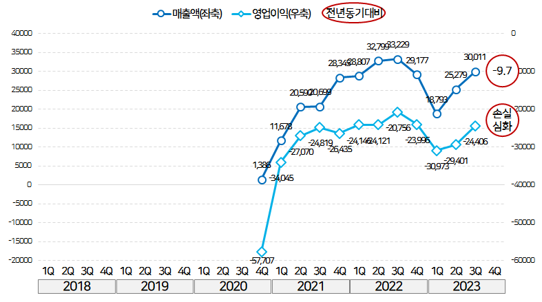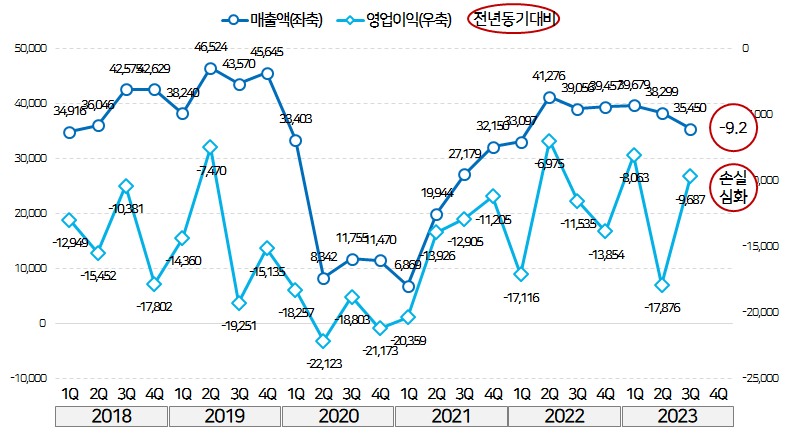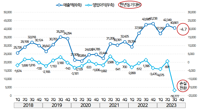 영업손익 역시 손실 전환되어 약 167억원의 손실을 기록했습니다.