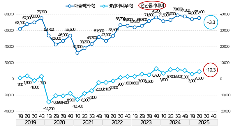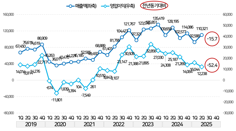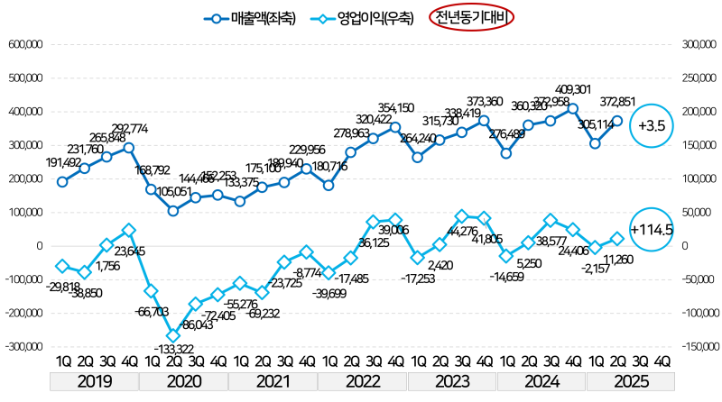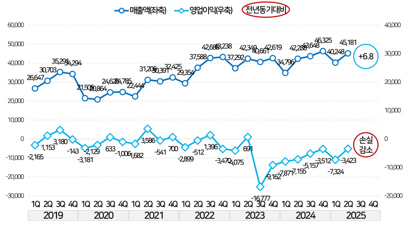 영업이익은 지난 2분기 연속 전년동기대비 하락세에서 반전했습니다만,