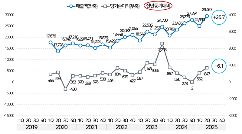 2분기 기준 역대 최고 매출을 기록했습니다.