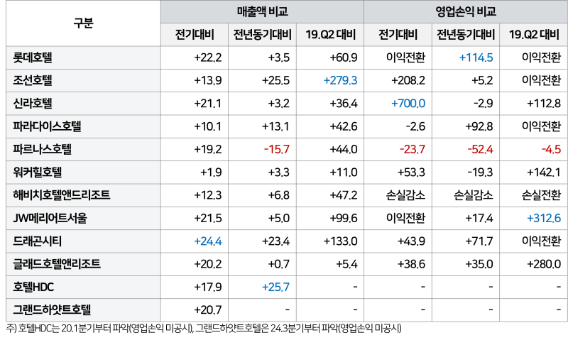 면세점 등 타 사업과 함께 있는 기업은 호텔 사업이 포함된 부문의 매출액만 포함했습니다.