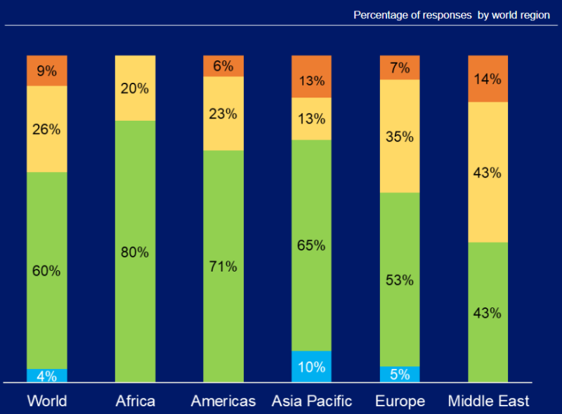 반면 나빠질 것이라는 비율은 중동과 아시아 태평양 지역에서 높았습니다.