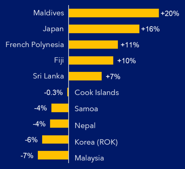몰디브, 일본은 코로나 이전 수준을 크게 앞질렀습니다.