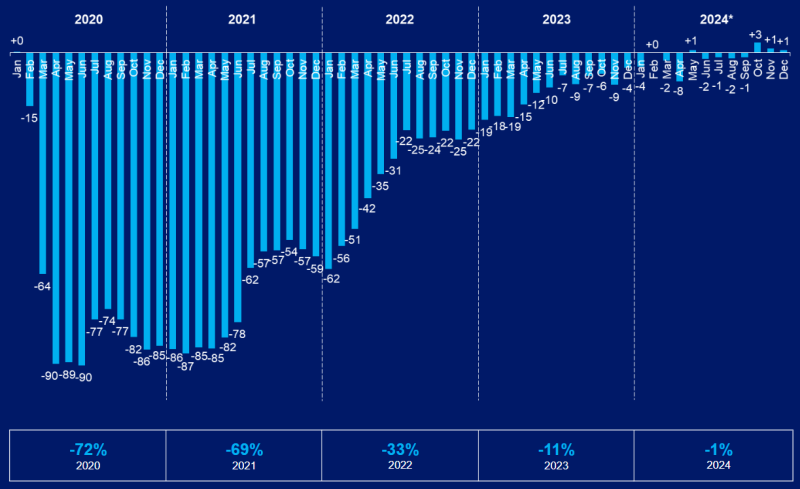 보시면 2024년 들어서는 19년 대비 높은 달도 있었습니다.
