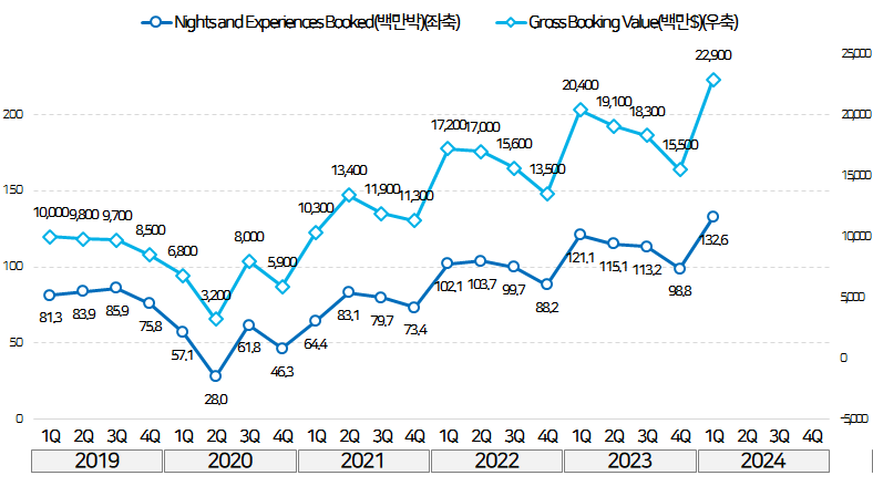 참고) 에어비앤비는 "Nights and Experiences Booked"