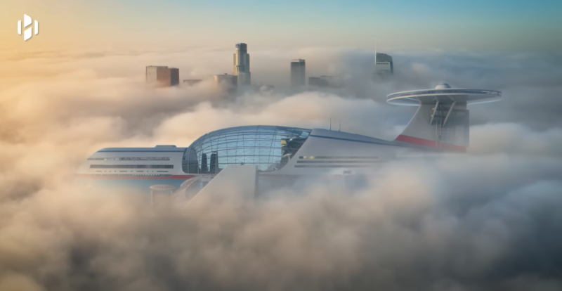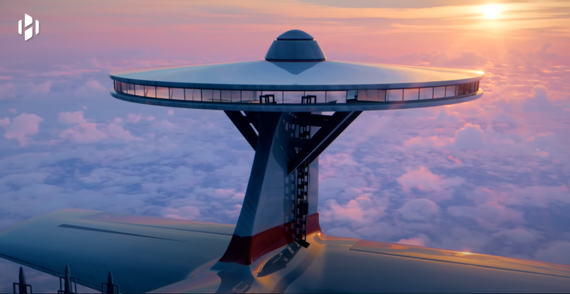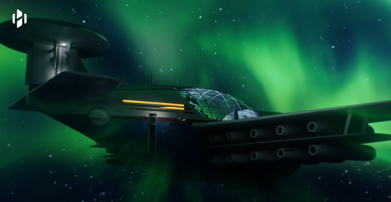 핵융합 발전을 통해 하늘에 떠서 몇 달~몇 년간 돌아다니는 공중 호텔 컨셉인 '스카이 크루즈(Sky Cruise)' 입니다.