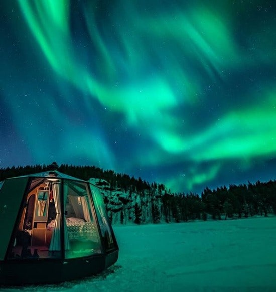 북극의 오로라를 볼 수 있는 썰매 호텔