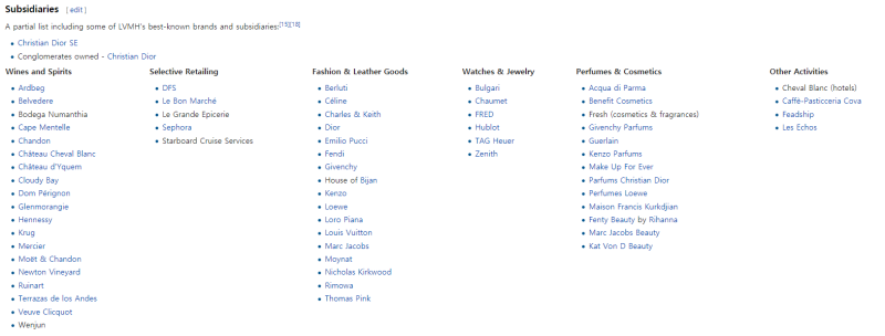 그럼 루이비통의 럭셔리 브랜드 포트폴리오를 한 번 보겠습니다.