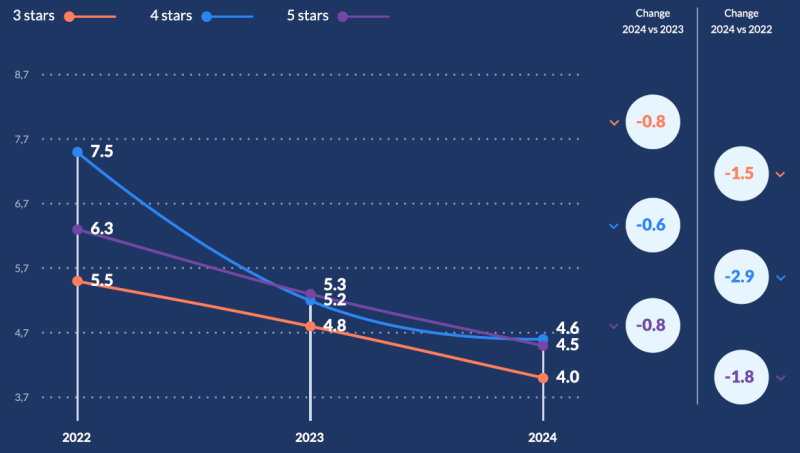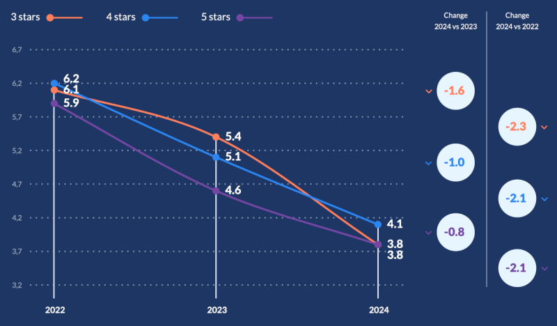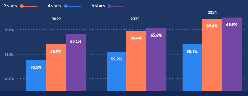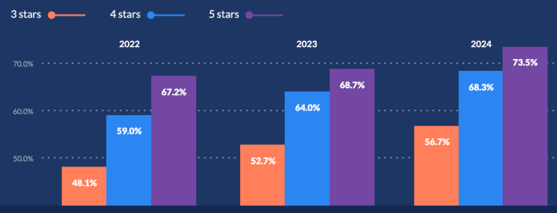 5성급은 90.1%로 0.5%포인트 상승했습니다.