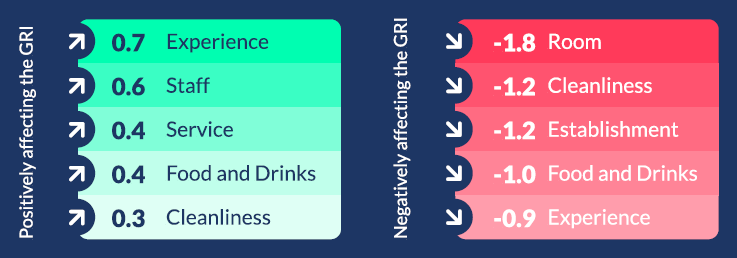 리뷰 지수에 긍정적인 영향을 주는 단어는 경험, 직원, 서비스 등이었으며,