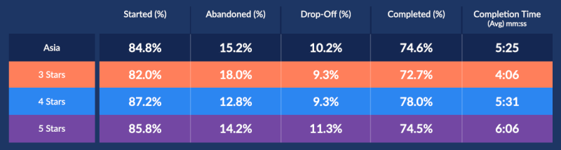 전반적으로 약 85%이상의 고객이 설문을 시작하며,
