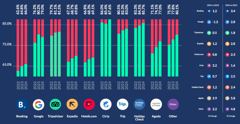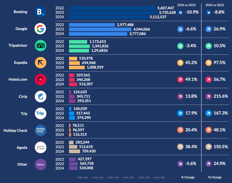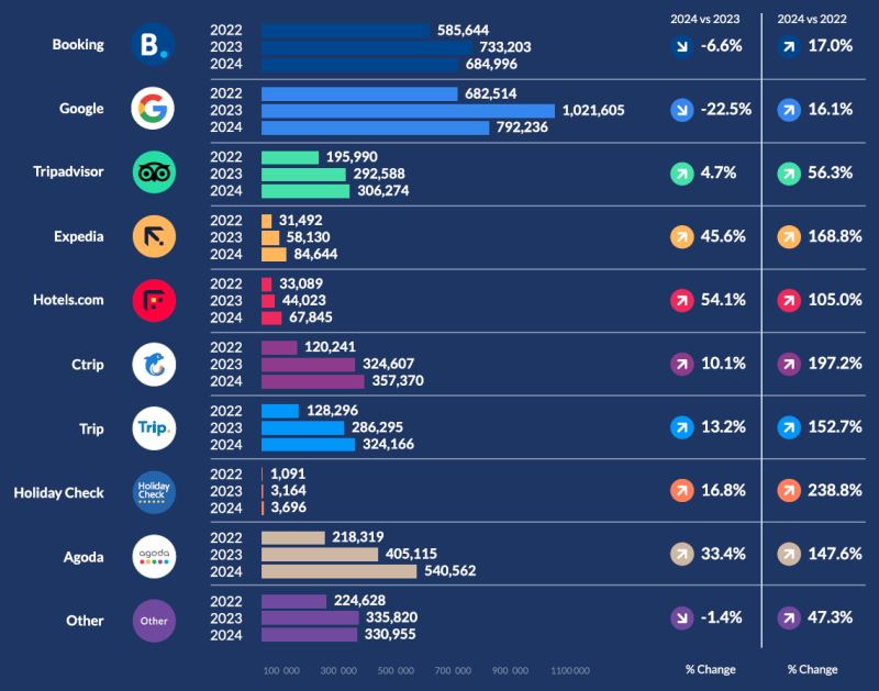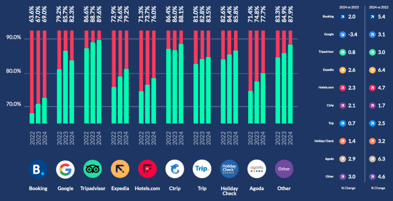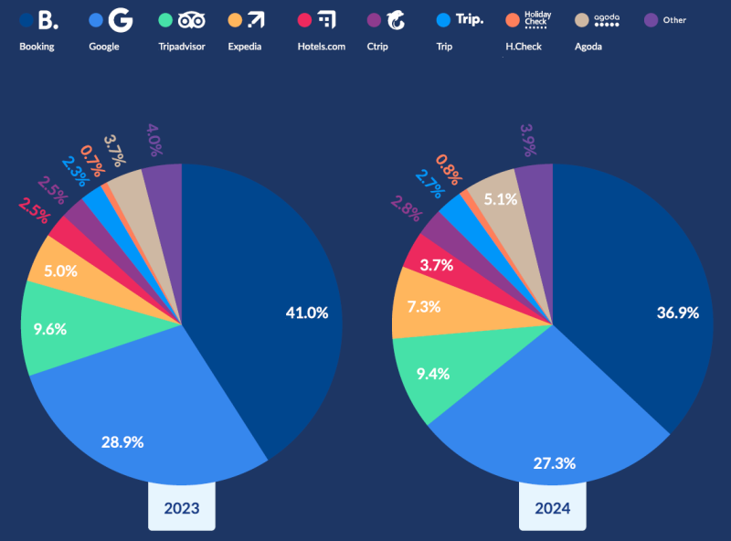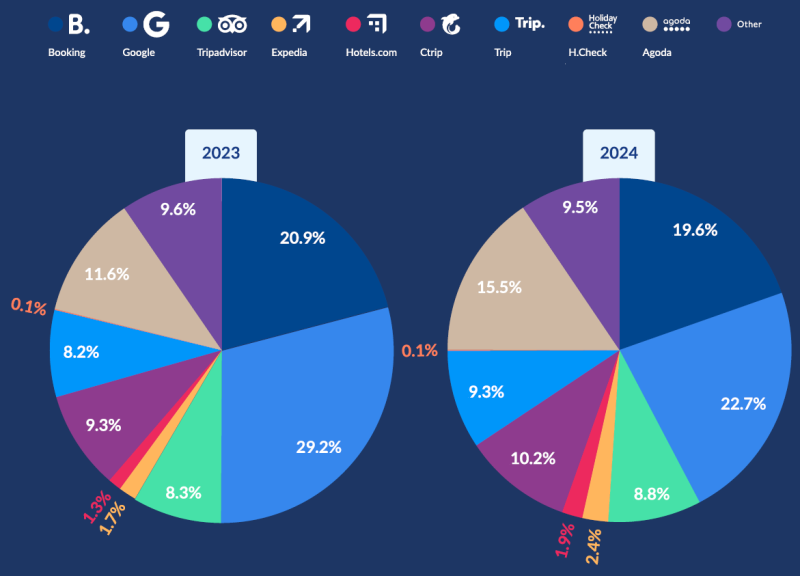 기존에 부킹닷컴, 구글, 트립어드바이저의 비중이 75%를 상회하고 있었는데요.