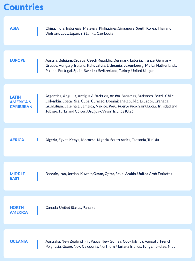 이번 분석에 포함된 지역과 국가는 위 표와 같습니다.