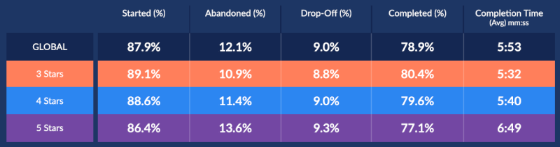 응답비율은 5성급이 소폭 낮습니다.