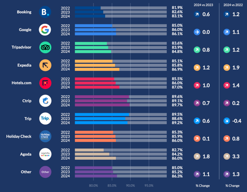 리뷰 프로(ReviewPro)의 전세계 호텔 리뷰 분석 결과(2024년)