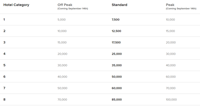 Starting September 14 Off-Peak starts at just 5,000 points per night, when hotels are less busy Standard just like today, starts at 7,500 points per night — it’s our most common rate Peak starts at 10,000 points per night, when hotels are busiest Search hotels Questions? See FAQs . New award redempt...
