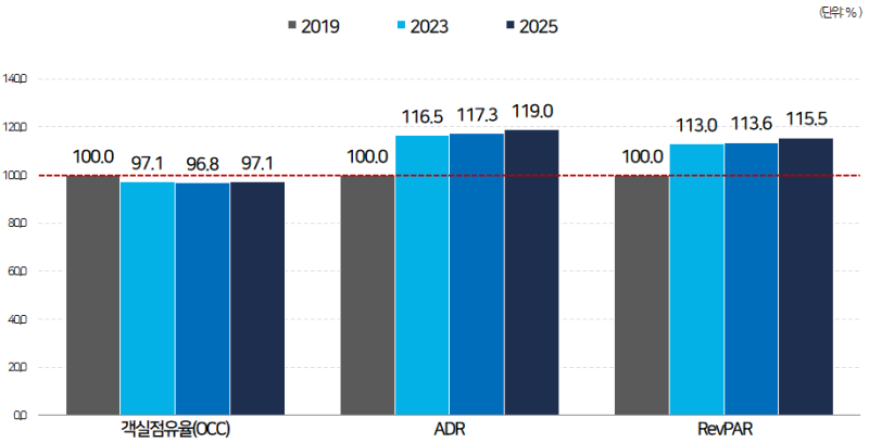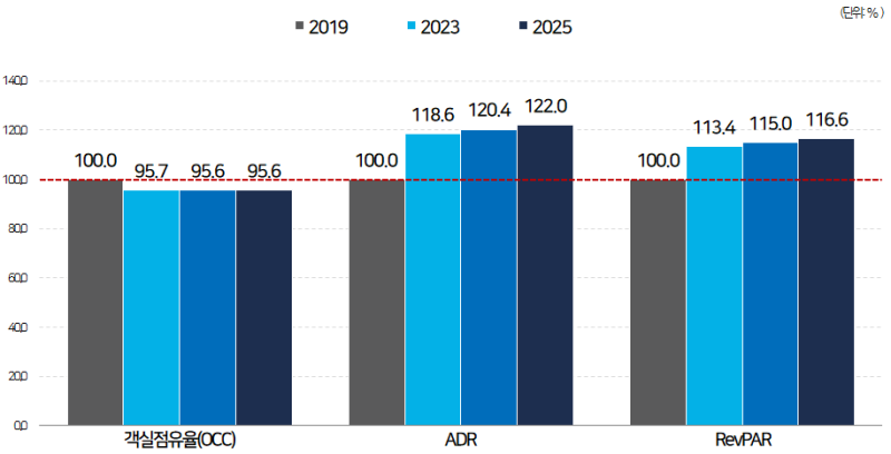 객실점유율(OCC, Occupancy)은 2025년에도 코로나 이전 수준을 회복하기 어려울 것으로 전망되었습니다.