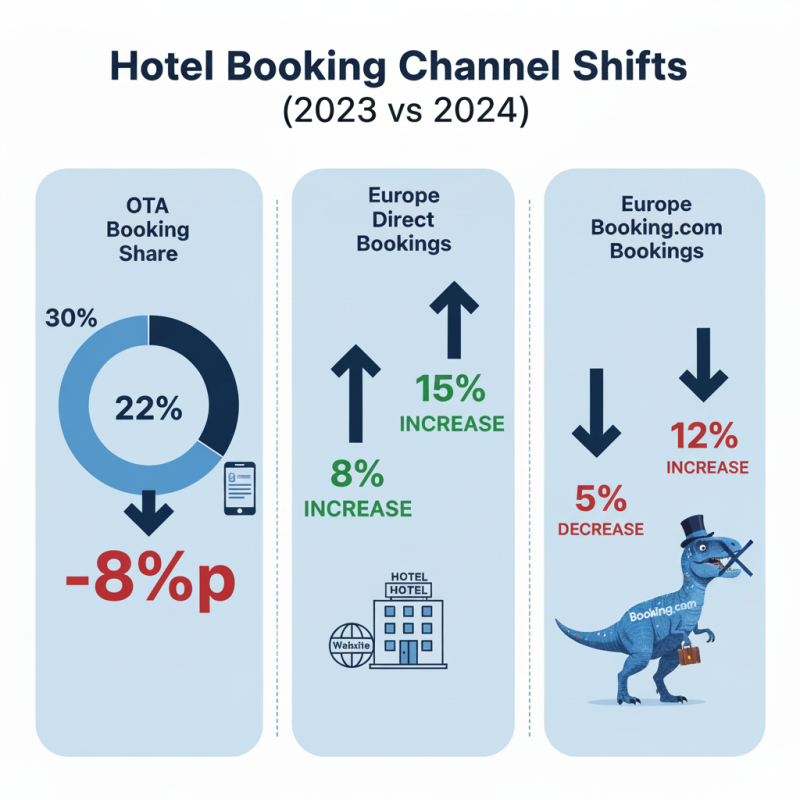 호텔 예약에서 OTA가 차지하는 비중이 전년 30%에서 22%로 급감했습니다.