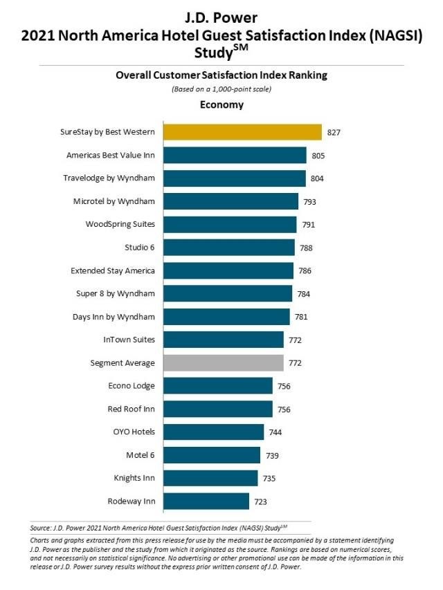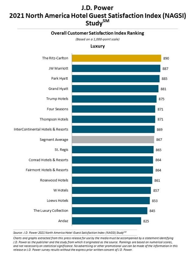 북미 지역 JD Power 호텔 부문 결과(2021년)