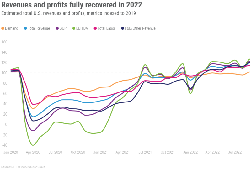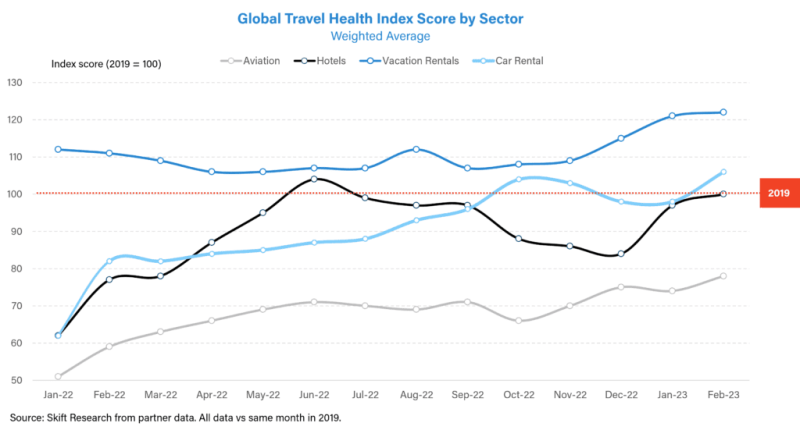 지난 2월에 호텔도 드디어 2019년 수준을 회복했습니다.