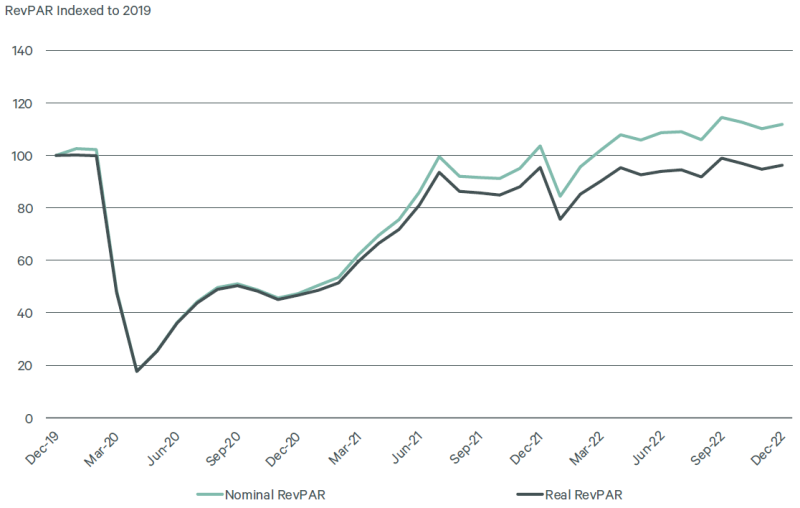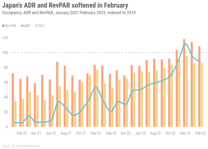 일본의 호텔 실적도 연말을 기준으로 2019년을 넘어서기 시작했습니다.