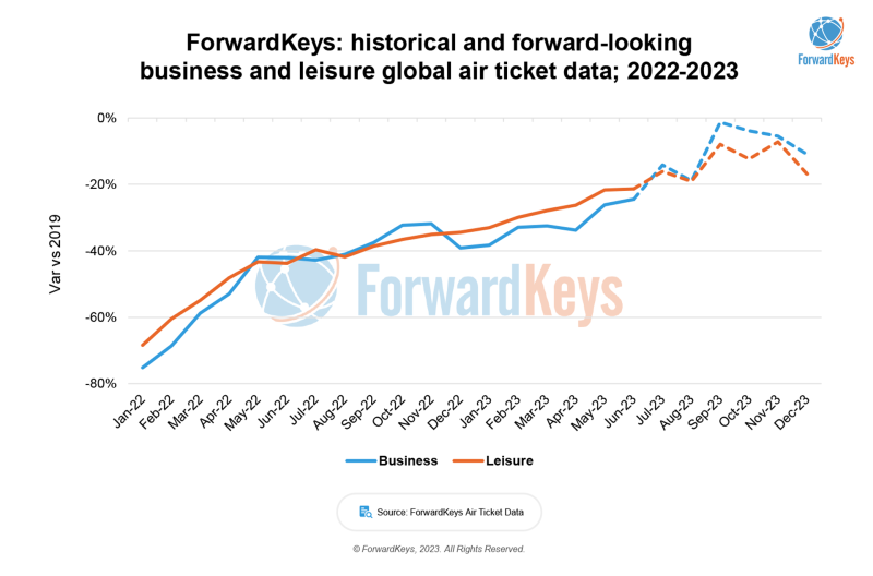 forwardkeys의 항공권 발권 데이터 분석에 따르면