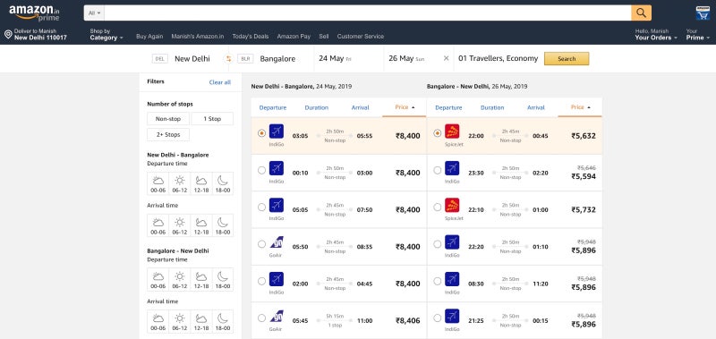 Amazon quietly introduces flight bookings for users in India | PhocusWire