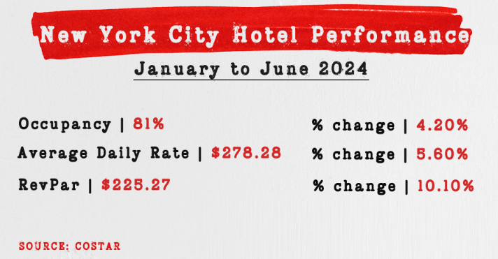 뉴욕의 호텔시장은 2024년 매우 좋은 실적을 기록하고 있습니다.