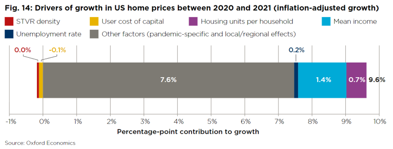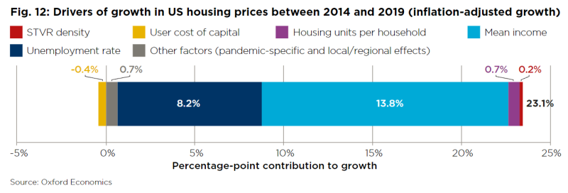 단기렌탈의 밀도 변화가 없었을 경우 주택가격은 약 800달러(107만원) 낮았을 것으로 분석되었습니다.