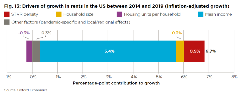 전체 임대료 상승분의 약 13% 정도가 단기렌탈 때문이었다는 것입니다.